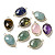Соединители звеньев латуни стеклянные, имитация нефрита, граненые, овальные, золотой свет (00N5F9)