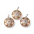 Драгоценный камень подвески, с латунной фурнитурой , платина, плоские круглые с деревом (00NRM6)