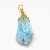 Кристаллы подвески из натурального druzy, с латунной фурнитурой золотого цвета, кубоид, окрашенные (00Q24P)
