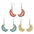 3 пары стеклянных серег-лунов, с 304 нержавеющей стали серьги крючки, золотые (037SNS)