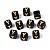 Непрозрачные акриловые бусины, золотой металл обвитыми, куб с письмом, чёрные (038T6G)