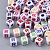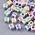Белые непрозрачные акриловые бусины, горизонтальное отверстие, куб с разноцветными буквами (021EAE)