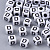 Белые непрозрачные акриловые бусины, горизонтальное отверстие, куб с черным алфавитом (021EAZ)