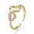 Латунные кольца из манжеты с прозрачным цирконием, плоско-круглые с сердцем, золотые (027KAP)
