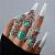 Прямоугольное кольцо на палец с синтетической бирюзой, ювелирные изделия из нержавеющей стали (02JTY9)