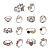 Кольца из цинкового сплава и страз, лист (038J9X)