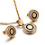 Ожерелье с подвеской из нержавеющей стали и серьга-гвоздик, золотые (034KFK)