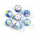 Нитка фарфоровых бусин ручной работы, круглые, белый и голубой фарфор (035HD3)