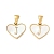 Сердечные подвески из натуральных белых ракушек, с латунными оправами и соединительными кольцами (0372M7)