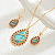 Ожерелья, серьги-подвески и браслеты с подвесками из сплава с синтетической бирюзой в форме капли (033WHR)