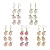 5пары 5 цвета стеклянные серьги с подвесками, с 304 нержавеющей стали серьги крючки, роза (02SMF5)