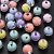 Светящиеся акриловые бусины, светится в темноте, плоский круглый с рисунком улыбающегося лица (02FP5P)
