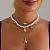 Стеклянный жемчуг каплевидный кулон латунная цепь двухслойные ожерелья для женщин, белые (0356KP)