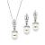 Ожерелье с подвеской и серьгой-гвоздиком из сплава ромбов, пластика, жемчуга и хрустальных страз (034N5R)