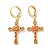 Серьги с подвесками из латуни, позолоченные из настоящей 18k, со стеклом, крестик (02RM1J)
