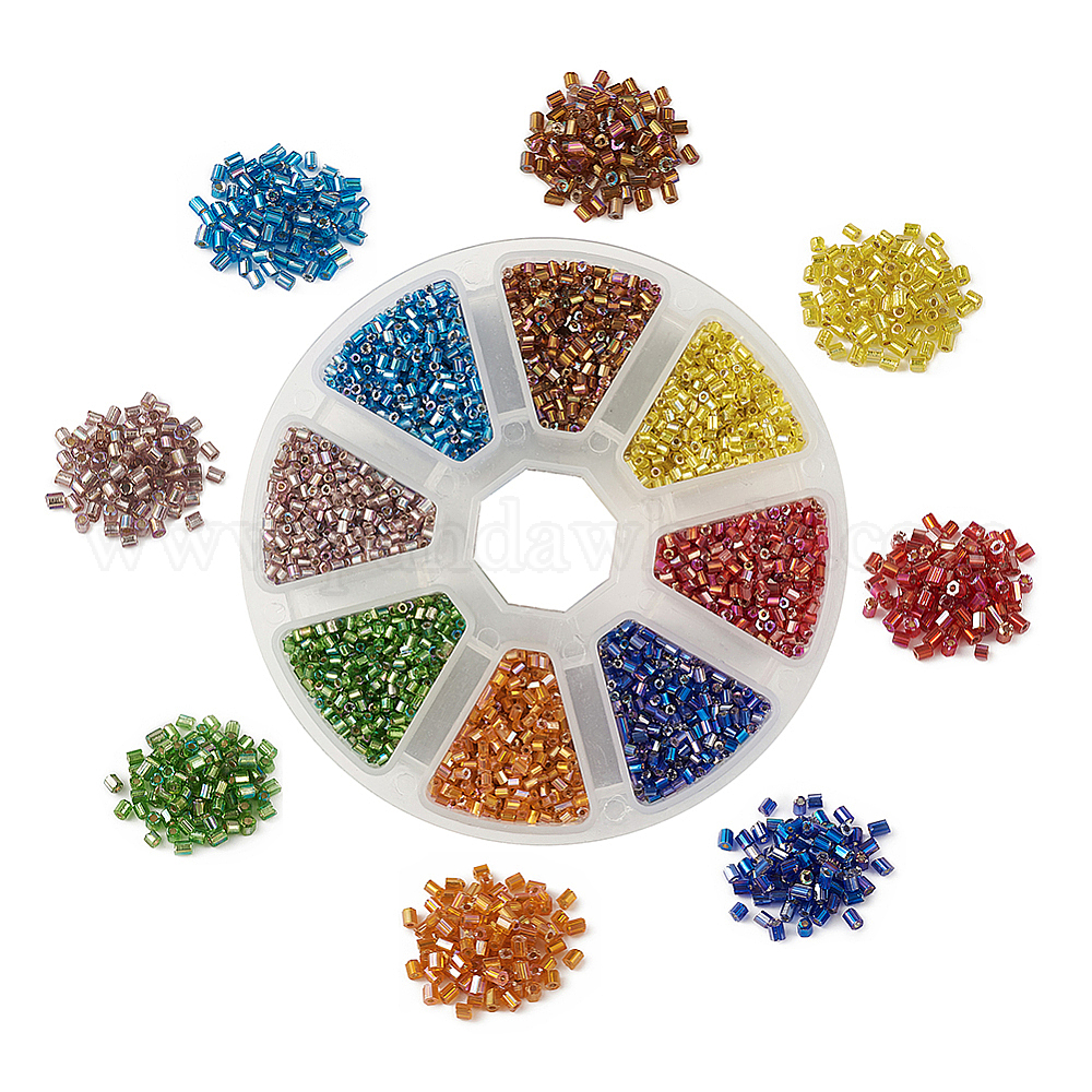 11/0 два срезанных круглых отверстия стеклянных шариков, шестиугольник, серебряная линия, с покрытием цвета радуги