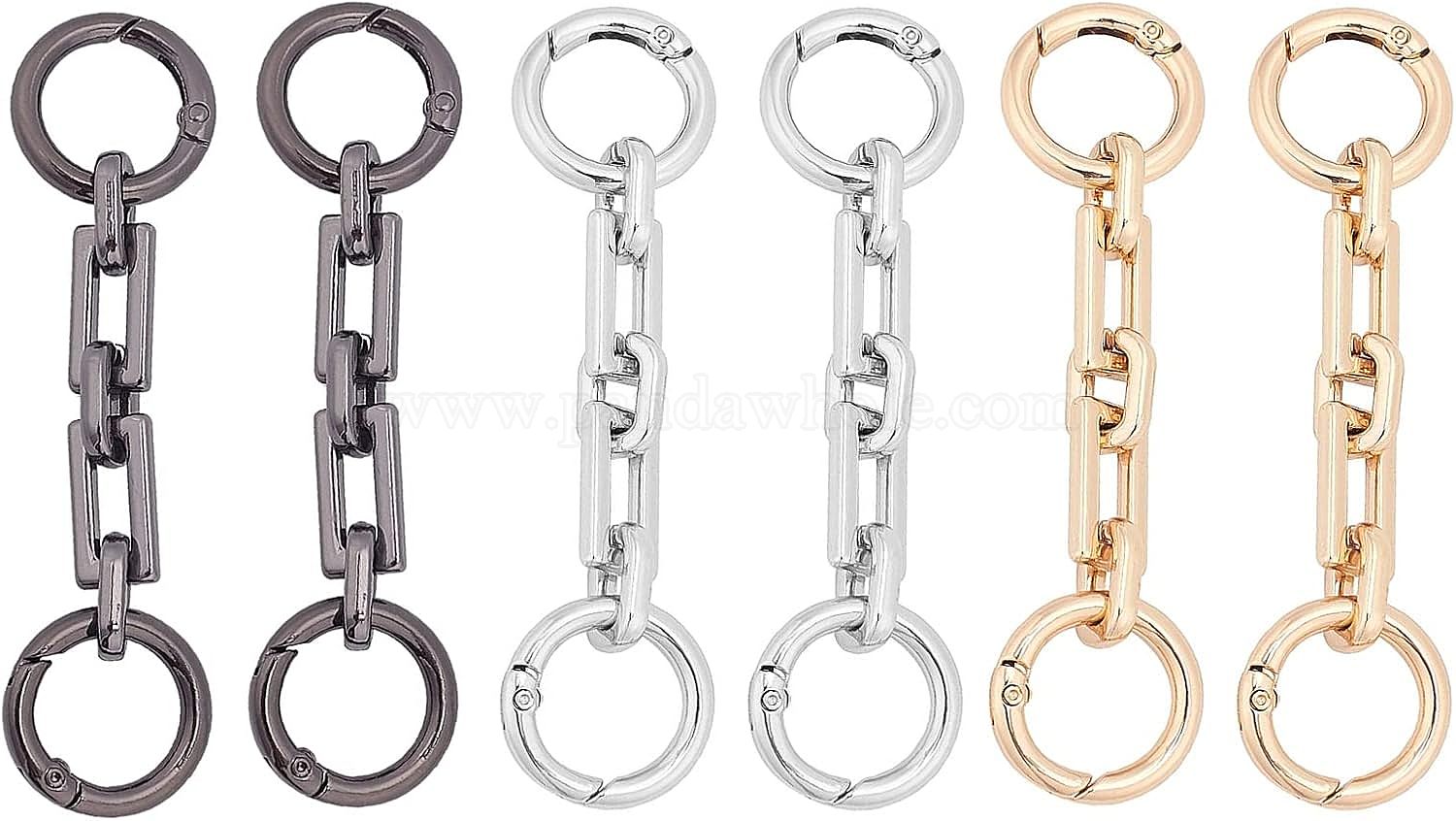 6 шт 3 цвета цинковый сплав сумка удлинитель кабель цепи, с застежками пружинного кольца, аксессуары для замены сумок (02BEFD)