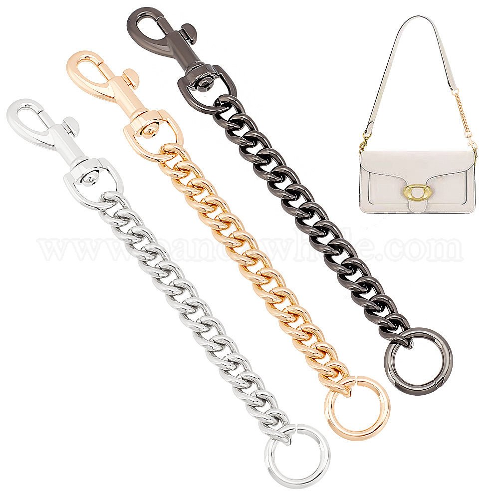 3шт 3 цвета железный мешок цепи для пандуса, удлинитель ремня сумки, с поворотным рым-болтом из сплава, карабином и прыгающим кольцом