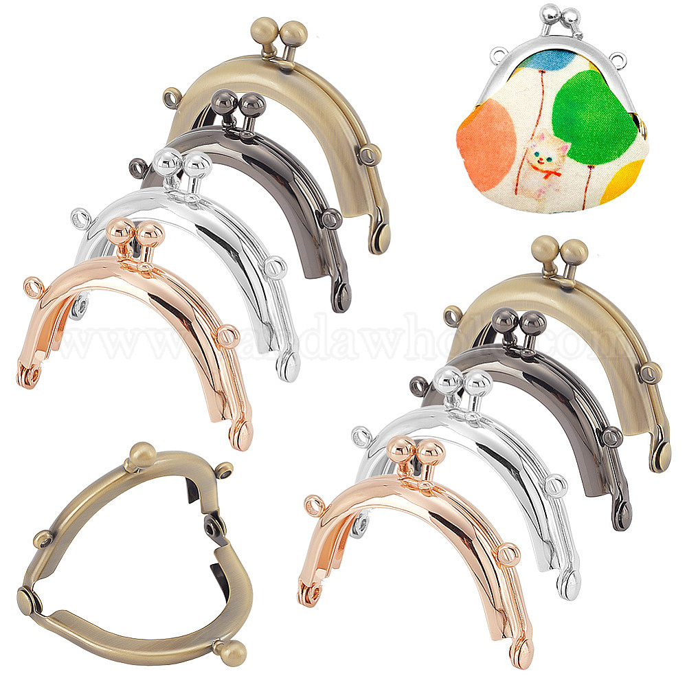 8шт 4 цвета железный замок поцелуй кошелек рамки, гладкая поверхность, для изготовления портмоне