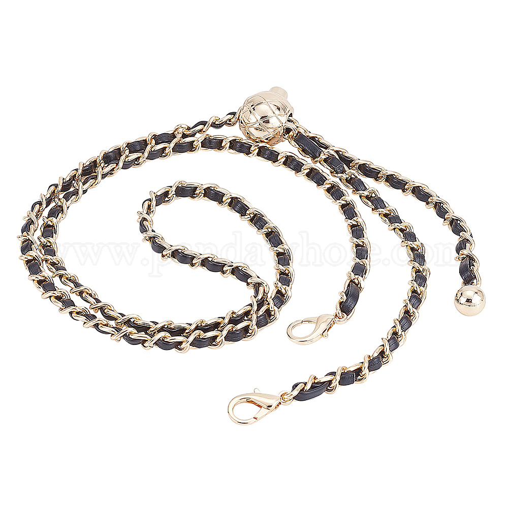 • Черный Плетеные ручки из искусственной кожи и железные цепные ручки для сумок, лямки для сумок, с замком для шнура и застежками-карабинами, регулируемая цепочка для изготовления кошелька, чёрные, 95~112x0.7x0.4 см