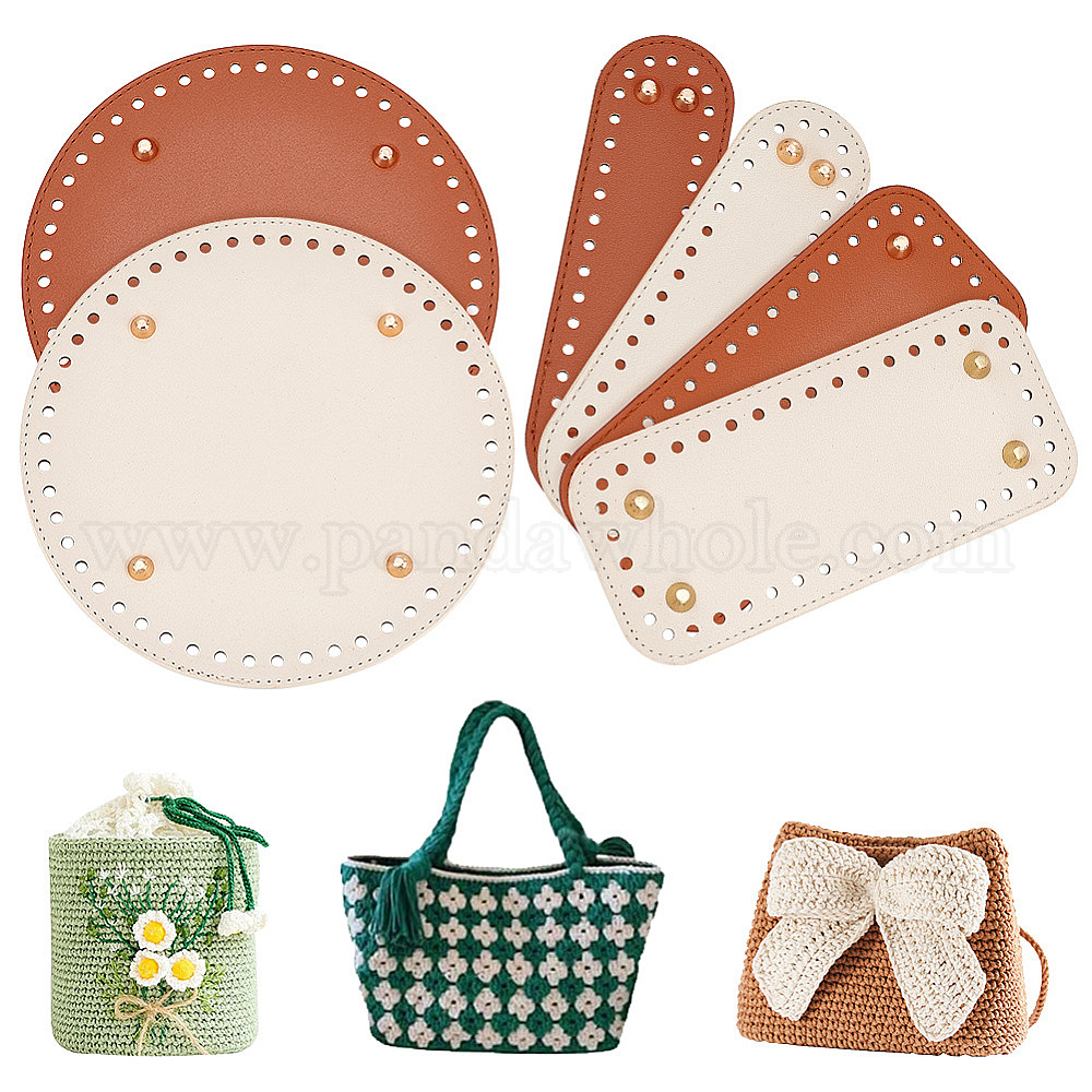 • Смешанные Узоры 6 шт 6 стиль искусственная кожа вязание крючком подушечки для формирования дна ногтя, с гвоздем из сплава, для аксессуаров дна сумки, овальные и прямоугольные и плоские круглые, смешанные узоры, 18~19x5.25~19x0.8 см, отверстие : 4~5 мм, 1 шт / стиль