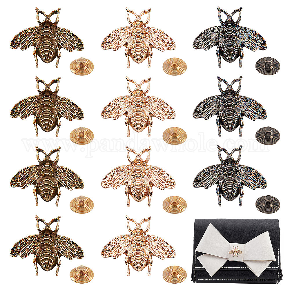 15 наборы 3 цвета сплав сумка декоративные застежки, с железными винтами, Пчелы
