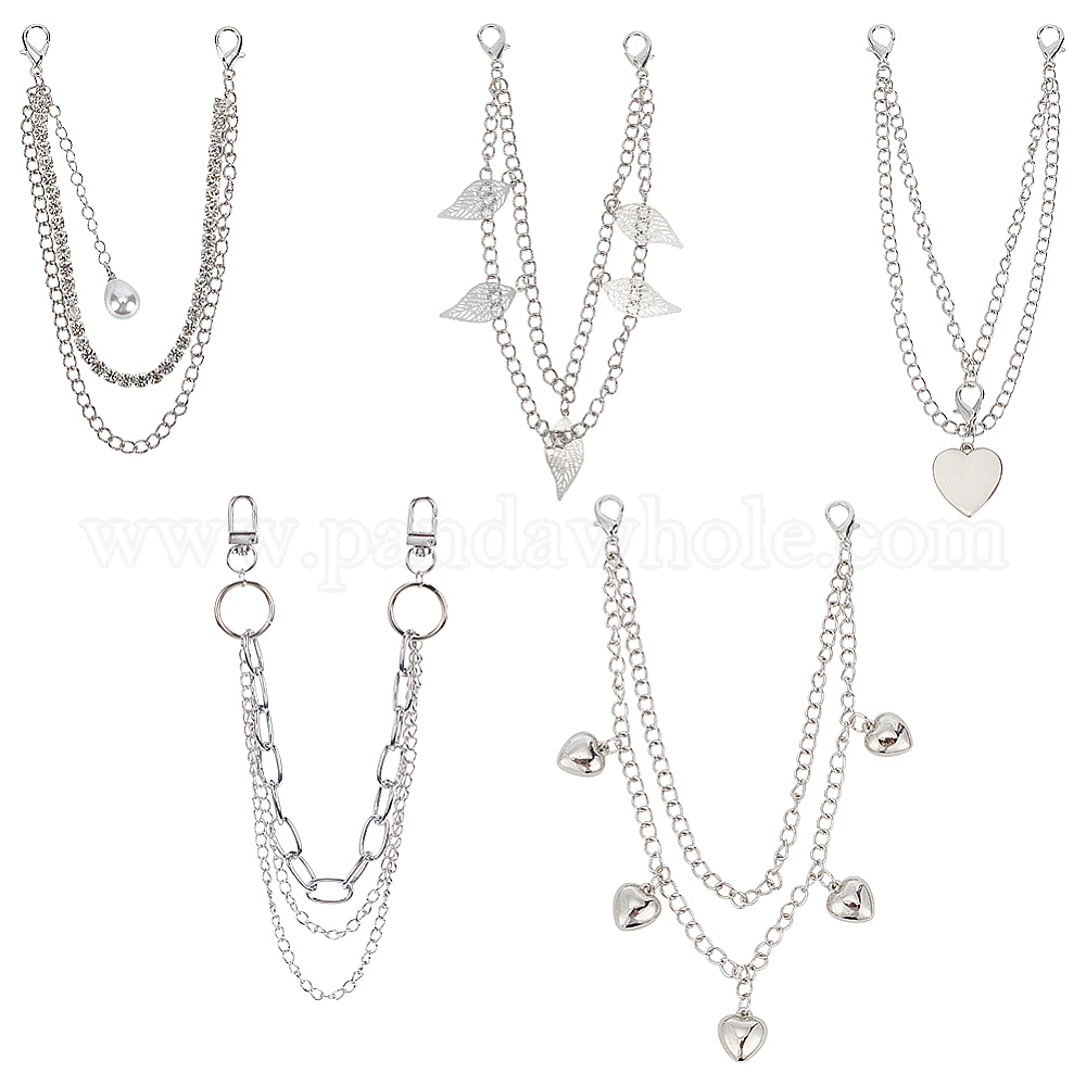 • Платина 5шт 5 стиль железные и сплав декоративные цепочки для сумок, цепь для брюк, сердце и листья, платина, 294~350 мм, 1 шт / стиль