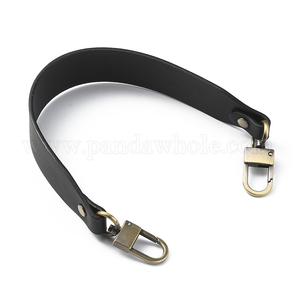 • Черный Широкие ручки для сумок из воловьей кожи, с поворотной застежкой из цинкового сплава, для аксессуаров замены сумочки, чёрные, 370x30.5 мм