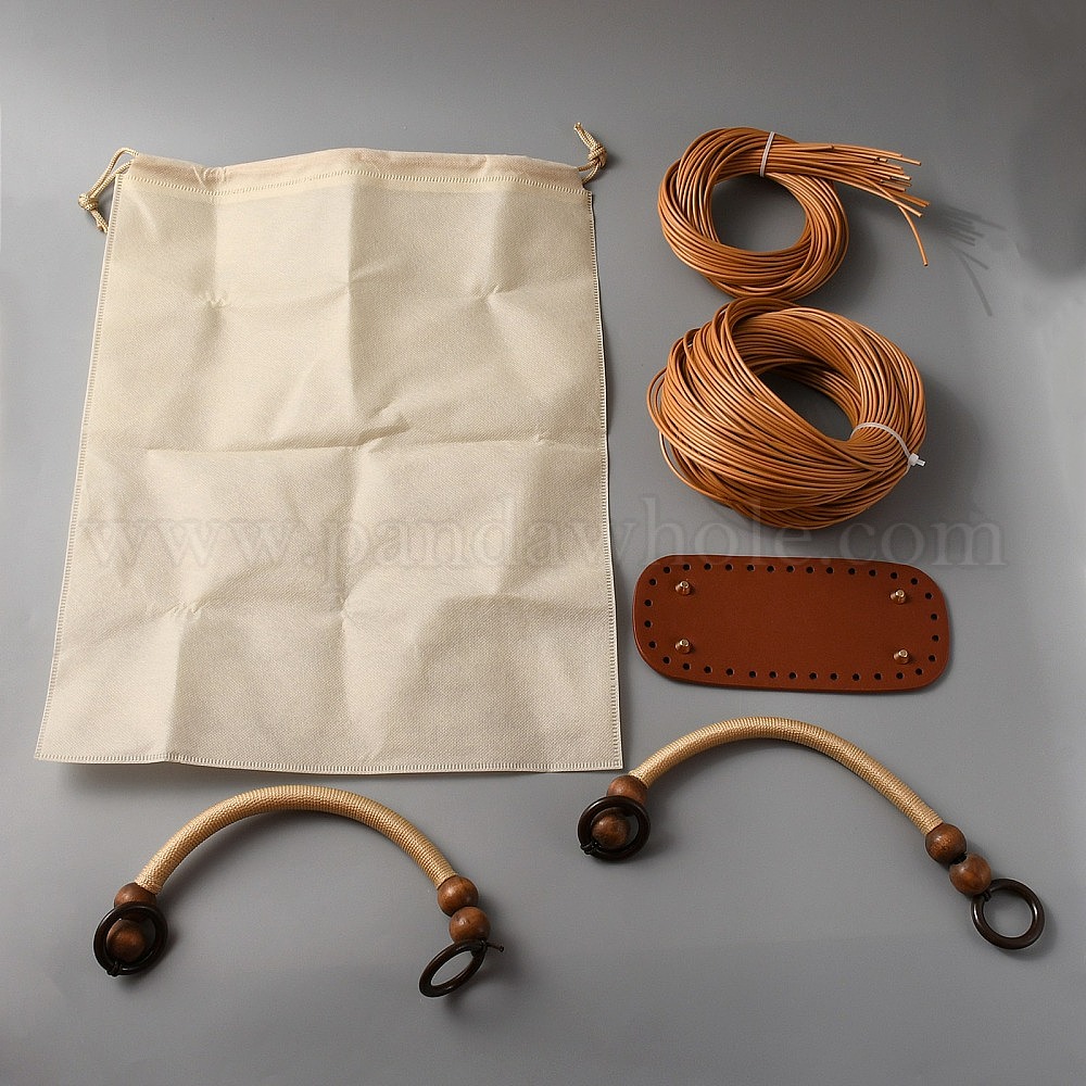 • Перу Набор женских сумок из пластика из ротанга своими руками, включая шнур из искусственного ротанга, вкладыш в сумку на шнурке, основа сумки крючком, ручка кошелька из деревянных бусин, Перу, 20~44.7x8.9~34.3x0.1~0.95 см