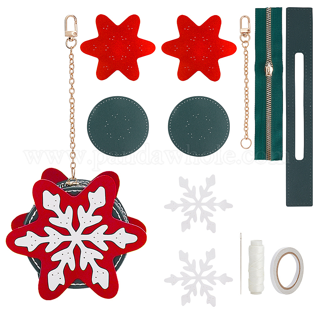 Набор для самостоятельного изготовления рождественского мини-сумочки-снежинки, включая дно сумки, ручки и молнии из искусственной кожи, нить, иглы, сплав часов