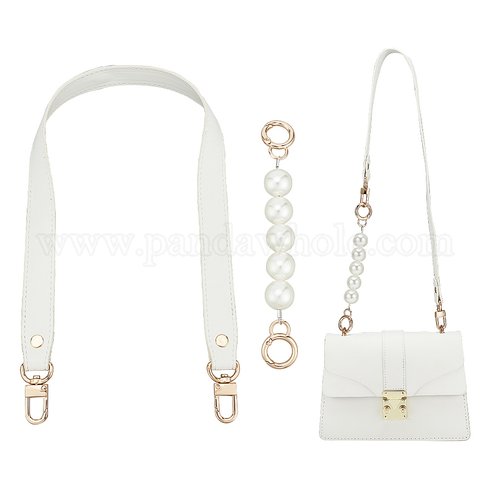 • Белый 2шт 2 стиль pu кожа и круглый АБС пластик имитация жемчуга ремни для сумки наборы, Сплав с застежками, белые, 17.1~60 см, 1 шт / стиль