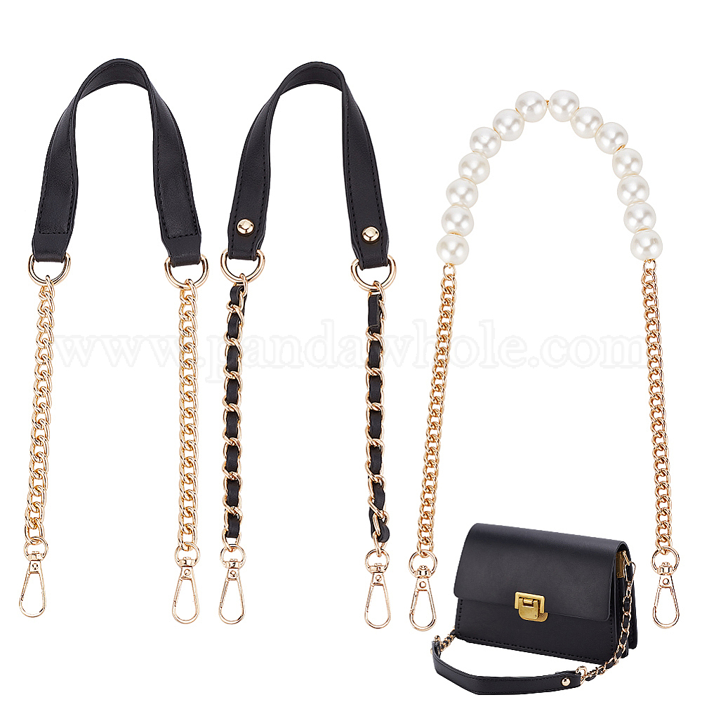 3 шт 3 стиль пластиковый искусственный жемчуг бусины/кожа pu ремни для сумки, с поворотными застежками, для замены ручки сумочки