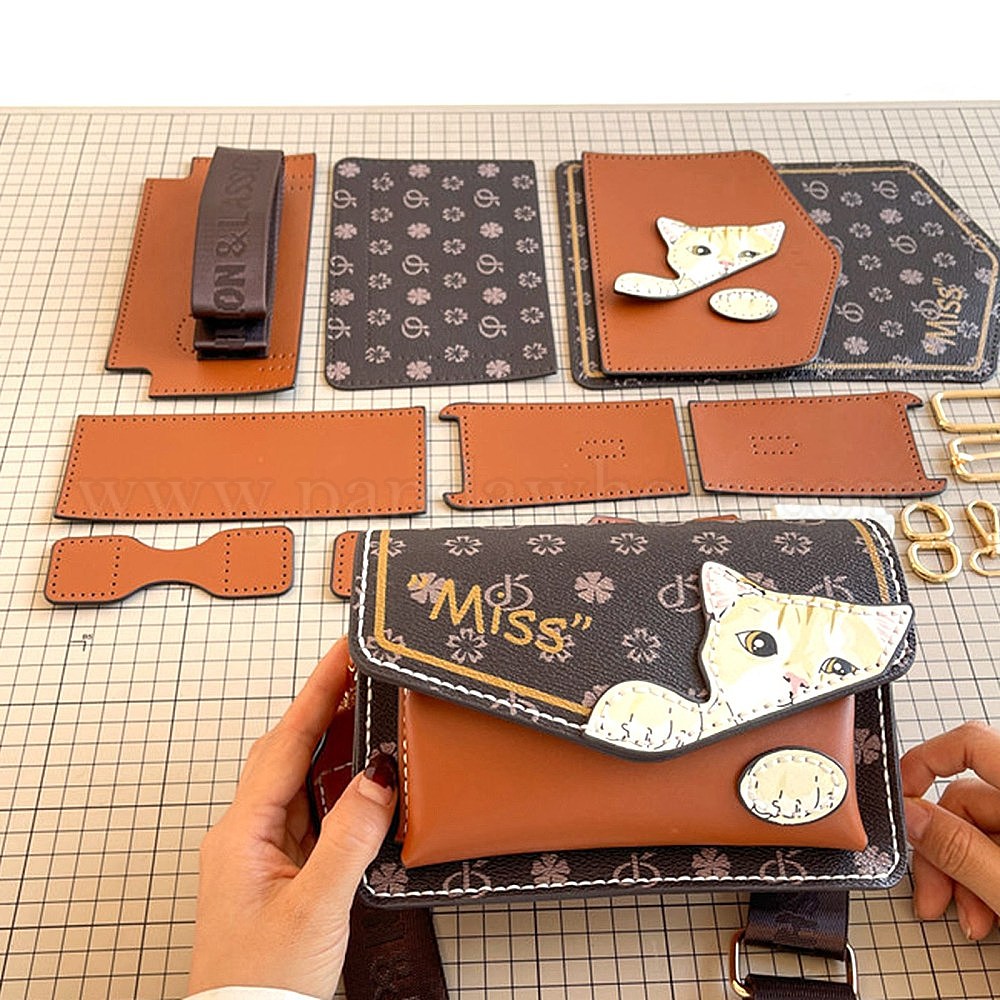 Наборы для изготовления милой кошачьей сумочки своими руками, включая искусственную кожу и металлическую фурнитуру