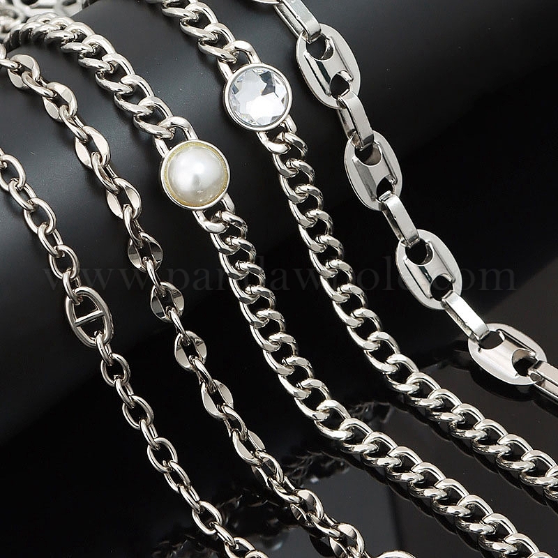 • Платина Металлические цепочные ремни для сумок, с застежками, для замены сумочки или сумки через плечо, платина, 1200 мм