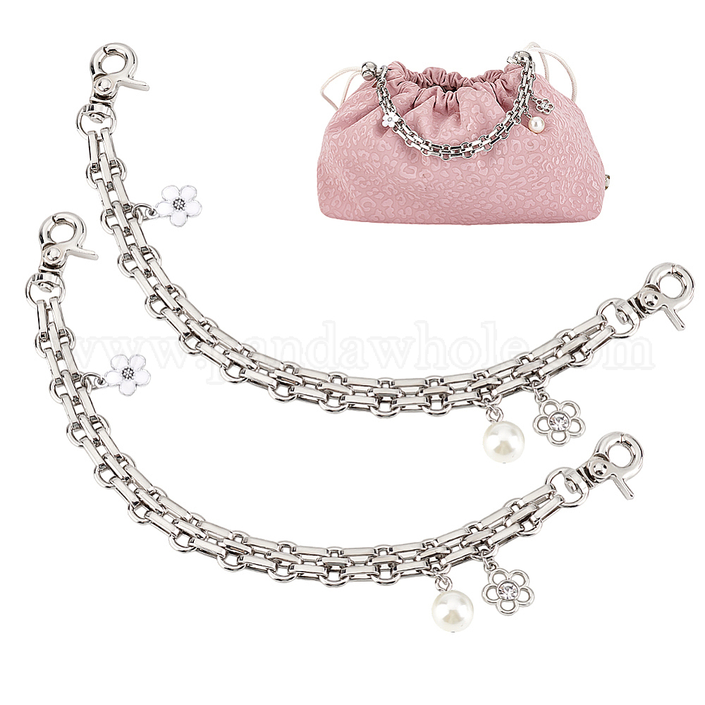 2шт. железные декоративные цепочки для кошельков, с омаром застежками, с подвесками в виде цветка из сплава и поворотными застежками, для замены ремней для мешков
