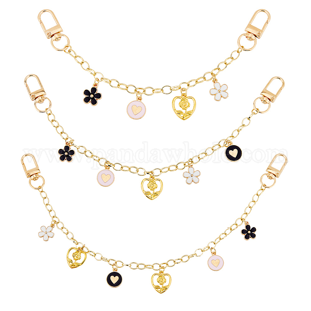 3шт латунные кабельные цепи сумки удлинители цепи, с подвеской из эмали и поворотными застежками из сплава