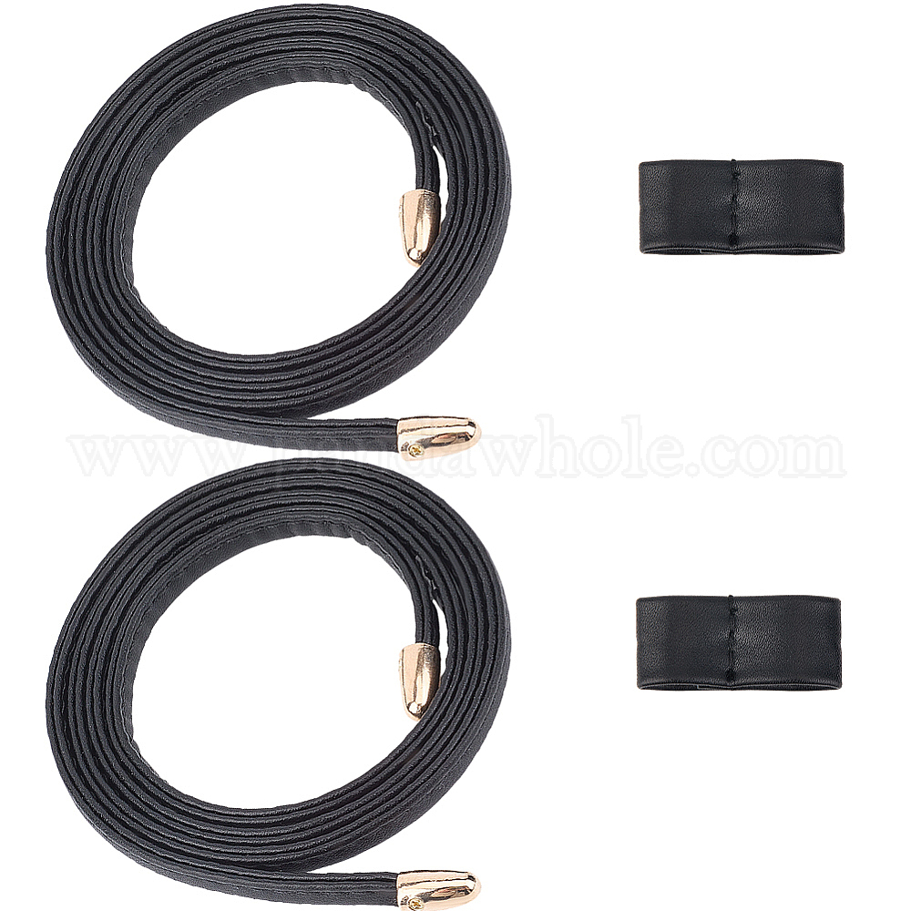 • Черный Плоский шнурок из искусственной кожи для сумки-ведра, со сплавочной фурнитурой, золотые, чёрные, 1000x7x3~8 мм