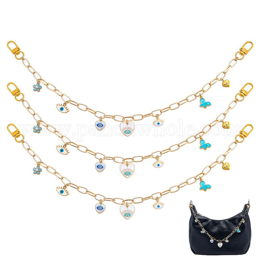 3шт. алюминиевые цепочки для скрепок цепи для удлинителей сумок, с подвесками в виде бабочки в форме сердца и латуни от сглаза, аксессуары для замены сумок, белые