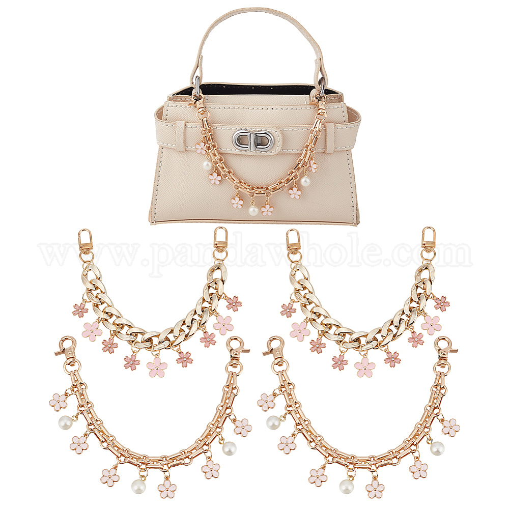 4шт 2 стили железный кабель цепи сумка декоративные цепи, с подвеской в виде цветка из эмали и застежками, аксессуары для замены сумок, золотые