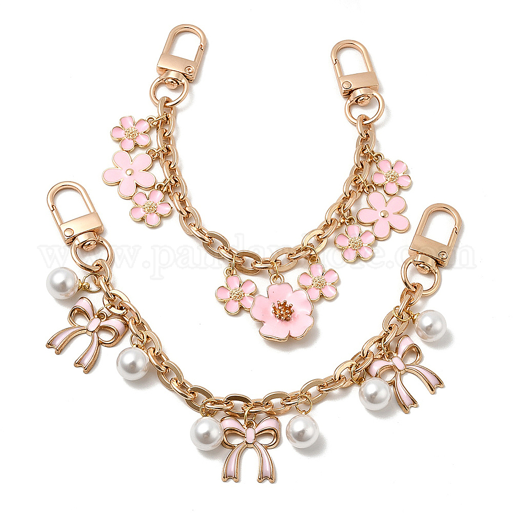 2 шт. 2 стили сплав розовый эмаль цветок бант кулон кабель цепочка кошелек декоративные цепи, с цинковым сплавом застежками омаров коготь, для замены ремней для мешков