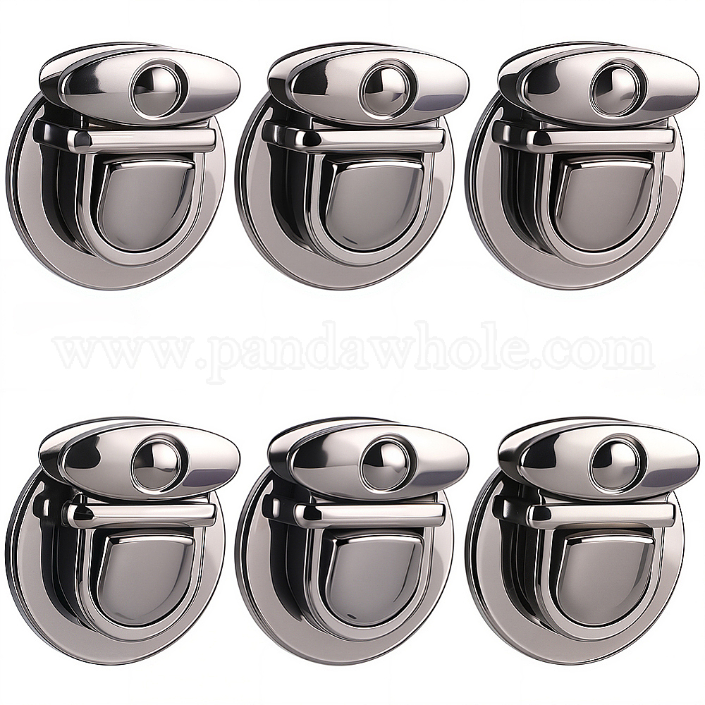 • Черный Цвет Металла 6 шт. плоские круглые застежки-замки для сумок из сплава, замки для большого пальца кошелька, для аксессуаров для замены сумок, металлический черный , 3.9 см