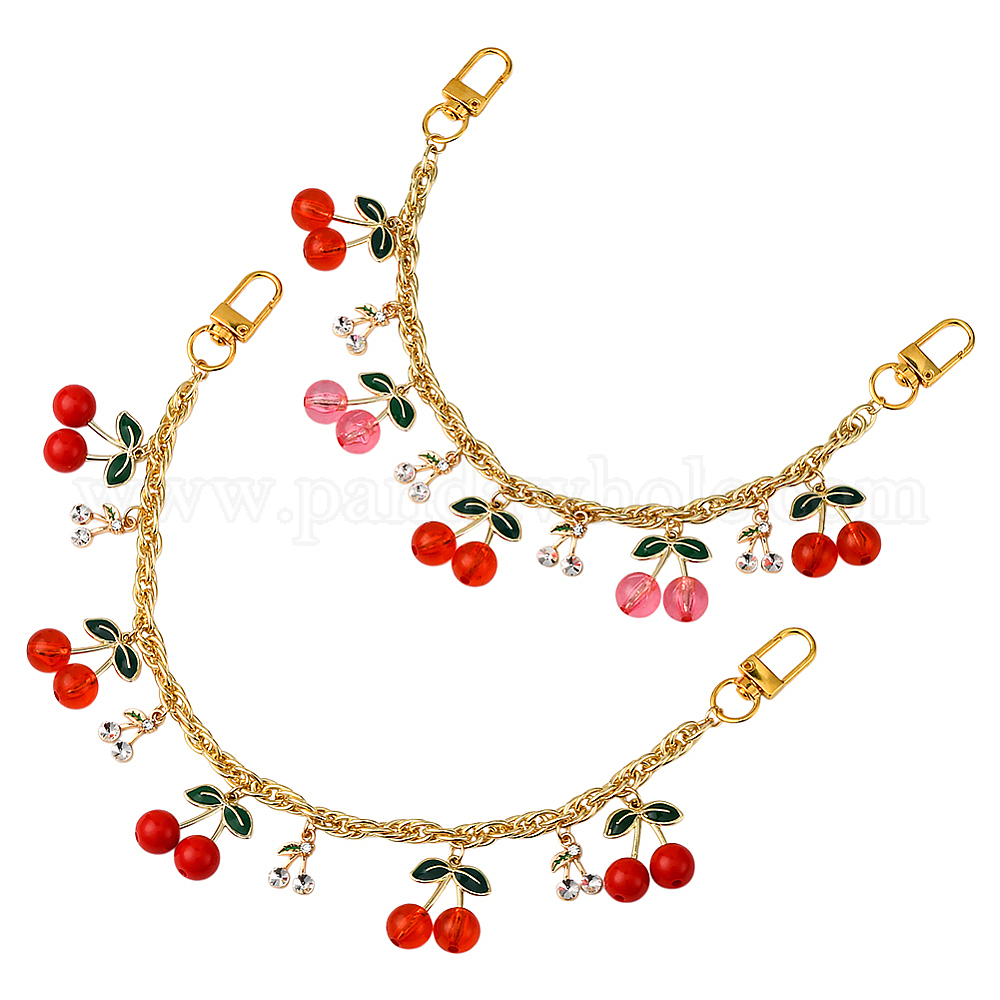 • Золотой 2 шт. 2 стили акриловые красные розовые вишневые подвески латунные и алюминиевые декоративные цепочки для сумок, Сплав с застежками, аксессуары для замены сумок, золотые, 275~285 мм, 1 шт / стиль