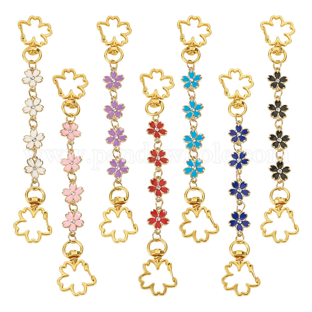 7 шт 7 цвета сплав эмаль цветок звено сумка удлинительные цепи, с сплава шарнирного когтя омара застежками, золотые