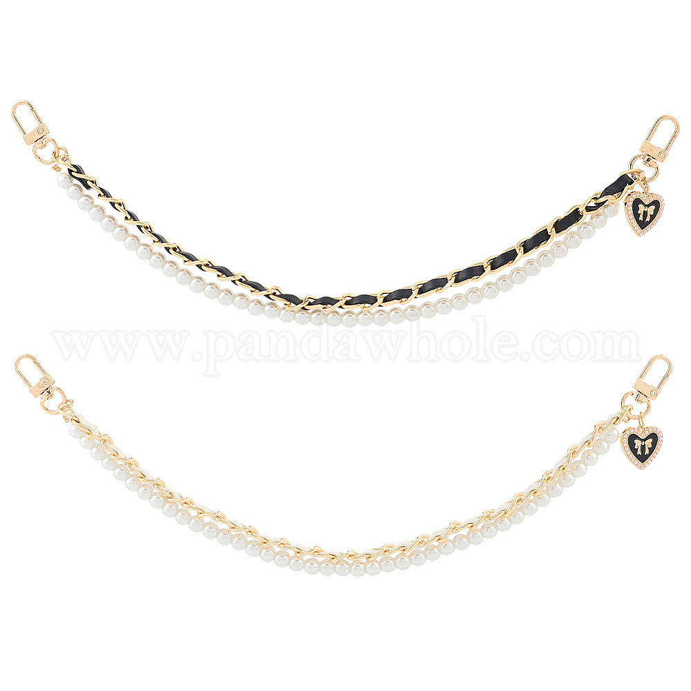 2 шт. 2 Цвета: искусственная кожа и искусственный жемчуг, двухслойные ручки для сумок с круглыми бусинами, с железными застежками и подвесками в виде сердечек, золотой свет