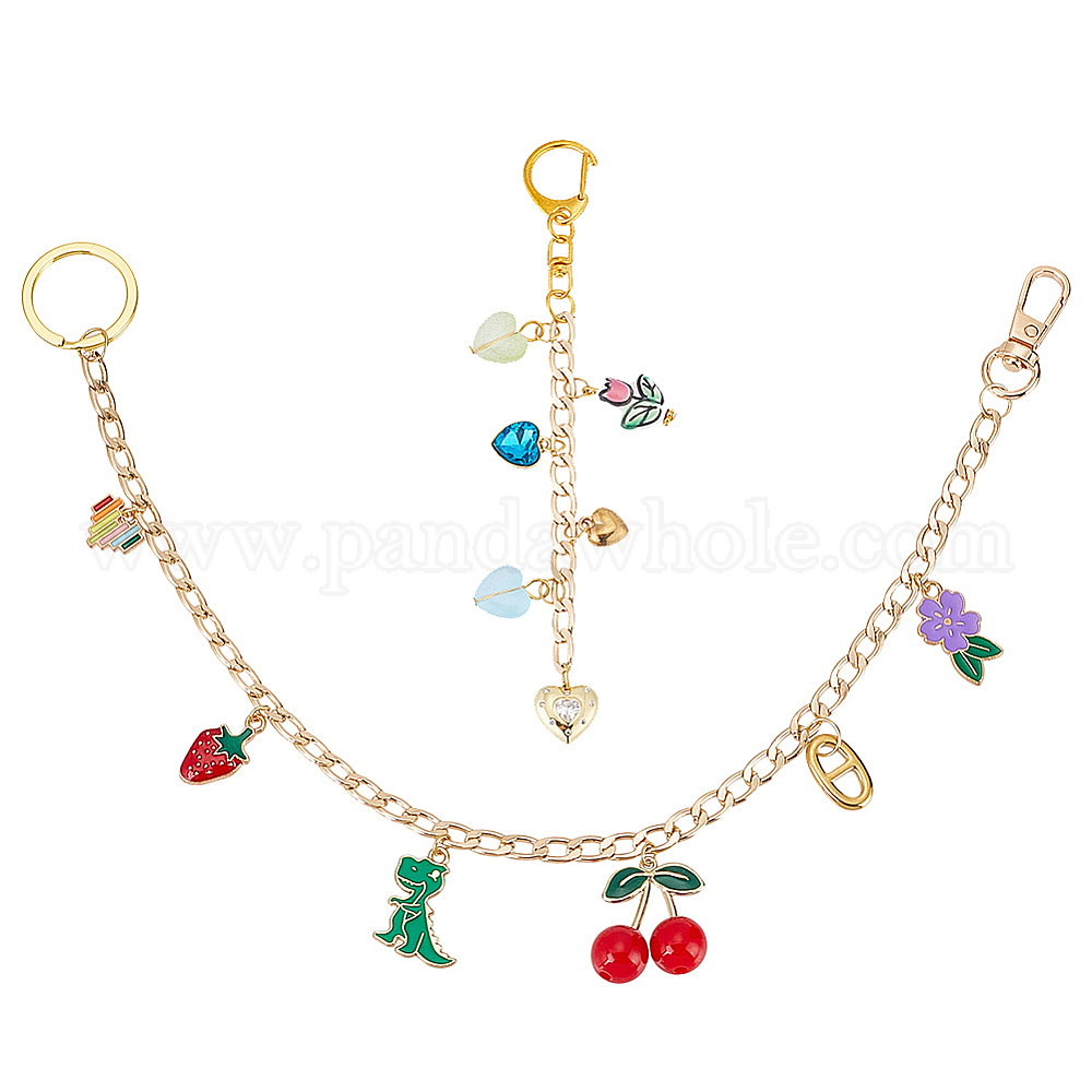 • Золотой Сплав эмаль со стеклянным сердцем динозавр вишня подвеска алюминиевая панцирная цепочка сумка декоративные цепи, с принадлежностями для замены мешка, красочный, золотые, 360 мм