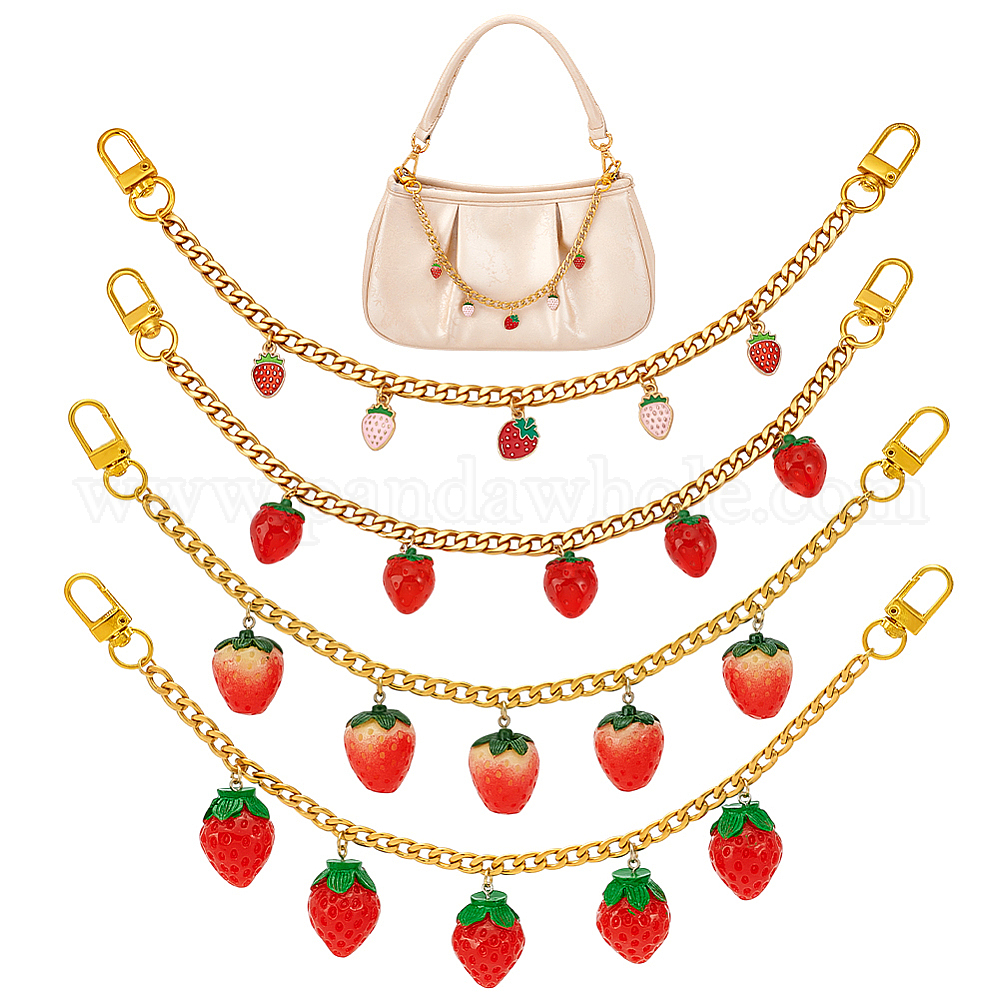 4 шт. 4 стили: сплав, эмаль и смола, фрукт, красная клубника, подвеска 304 декоративные цепочки из нержавеющей стали, с сплава шарнирного когтя омара застежками