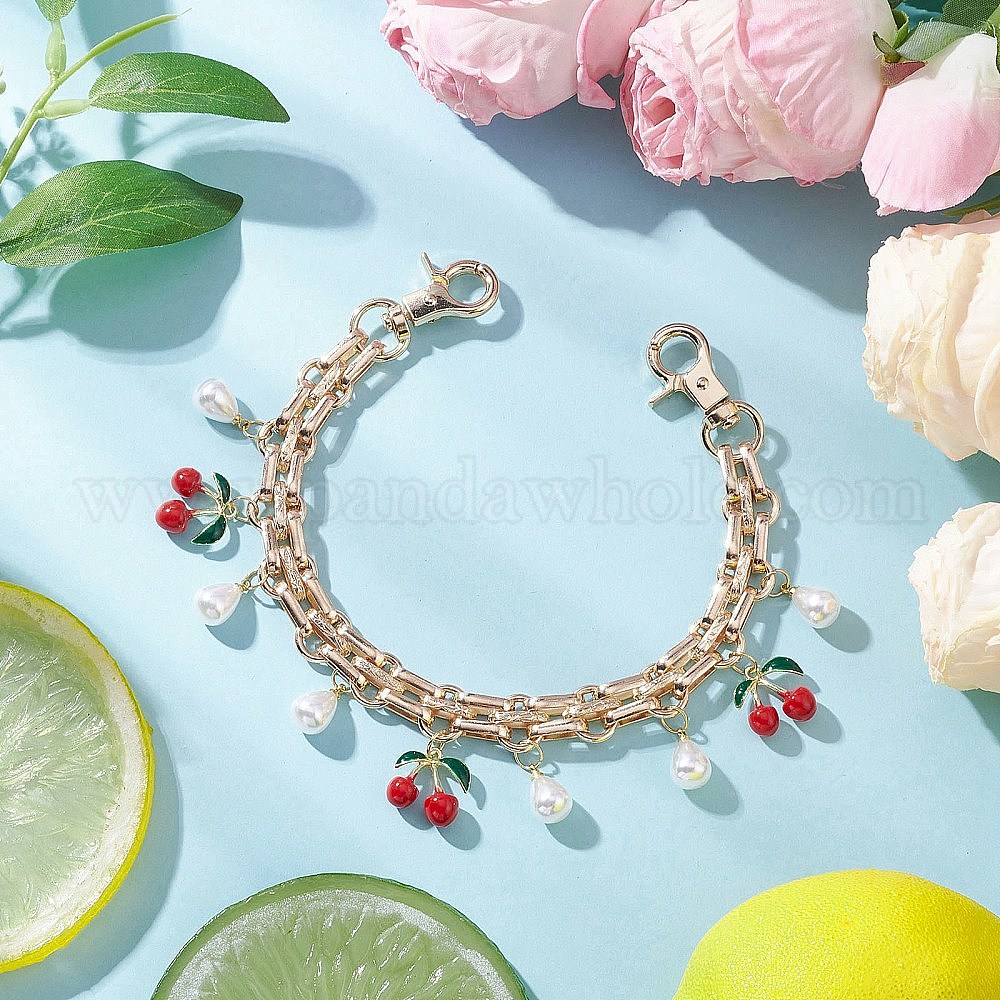 Ручки для сумок с железной цепью, вишня, с подвеской из АБС-пластика с имитацией жемчуга и эмалевым сплавом
