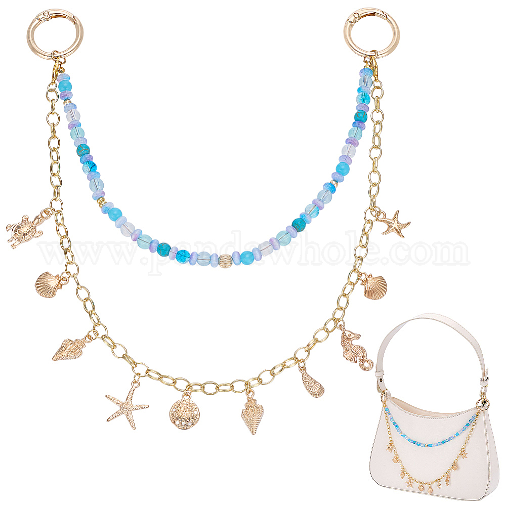 Подвеска в виде морских животных из сплава, стеклянная и синтетическая бирюза, двухслойные латунные бусины, декоративные цепочки для сумок, с пружинными кольцами ворот, глубокое синее небо