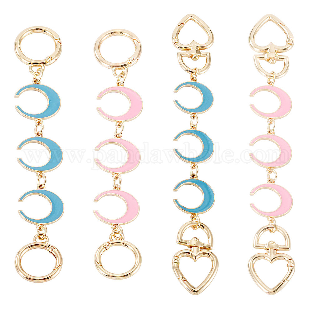 4шт. 4 стили: цепочка из сплава с эмалированным покрытием в форме полумесяца, удлинительные цепочки для сумок, с литыми пружинными кольцами, золотой свет