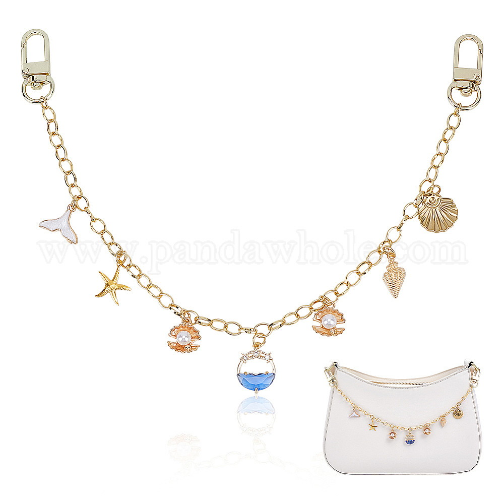 • Золотой Подвеска в форме ракушки из сплава с синей эмалью на морскую тематику из латуни с декоративными цепочками, с поворотными застежками сплава, золотые, 337 мм